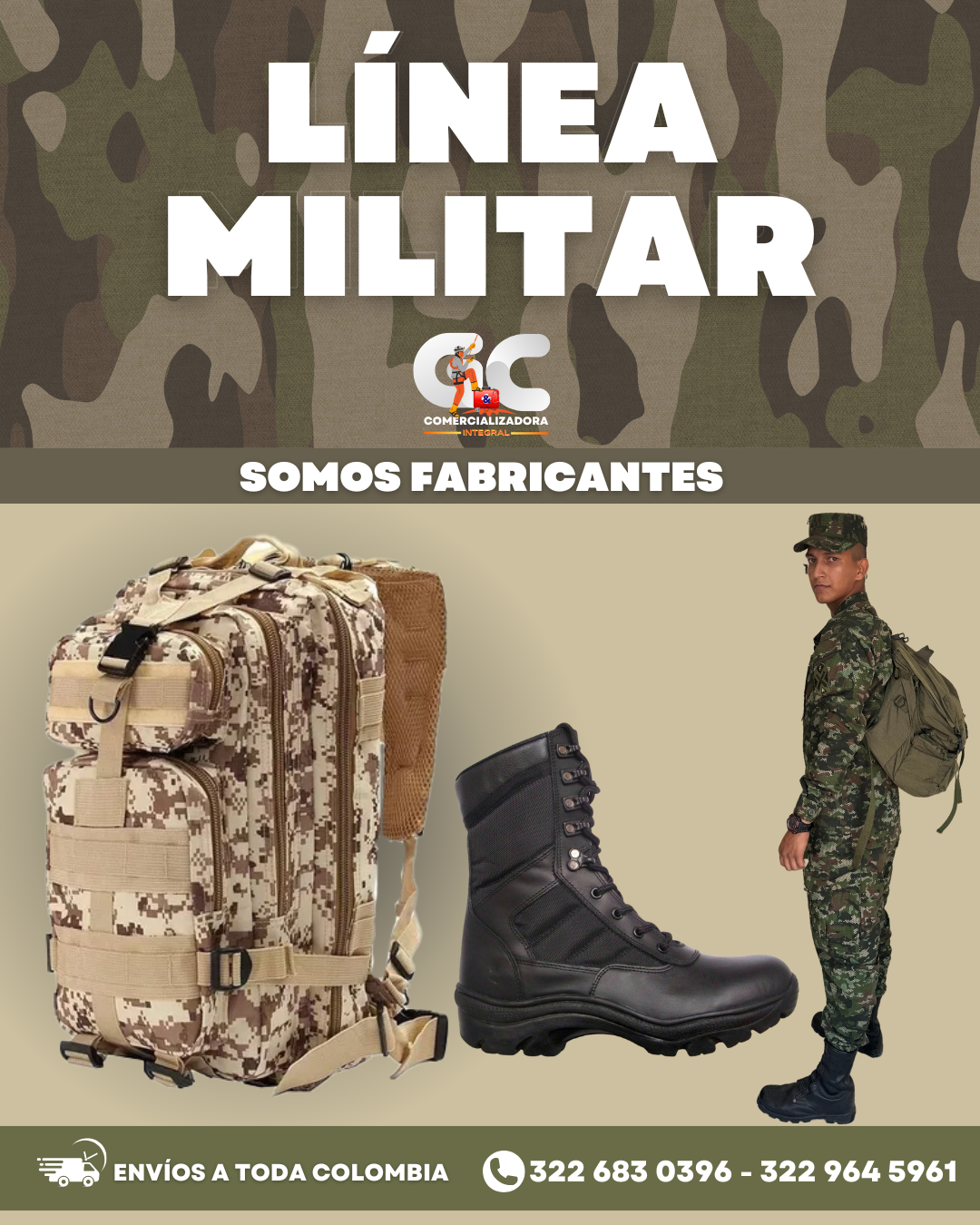 En Comercializadora Integral G & C entendemos las exigencias únicas de las fuerzas militares, cuerpos de socorro, brigadas tácticas y personal en campo. Por eso, hemos desarrollado una línea especializada que combina dotación táctica, insumos médicos de campaña y equipos esenciales para operar en condiciones extremas con seguridad, eficiencia y confianza.Nuestra Línea Militar integra productos funcionales, resistentes y diseñados para apoyar la toma de decisiones críticas en terreno.